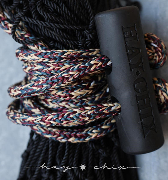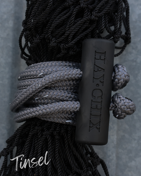 The Half Bale Original 1 3/4" Net comes with the new ✧REFLECTIVE✧ edition rope! Have you ever lost a net out in the pasture? Or have you had trouble finding it in the dark barn or horse trailer? Use your cell phone's flashlight and it will shine bright so it's easier for you to find!