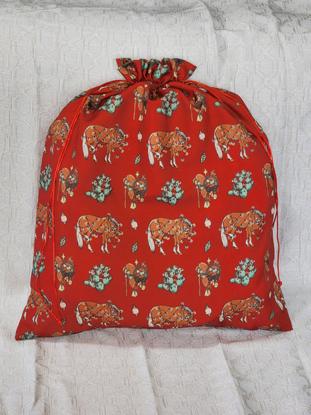 Western Christmas Reusable Gift Bags - Red Ponies Print
